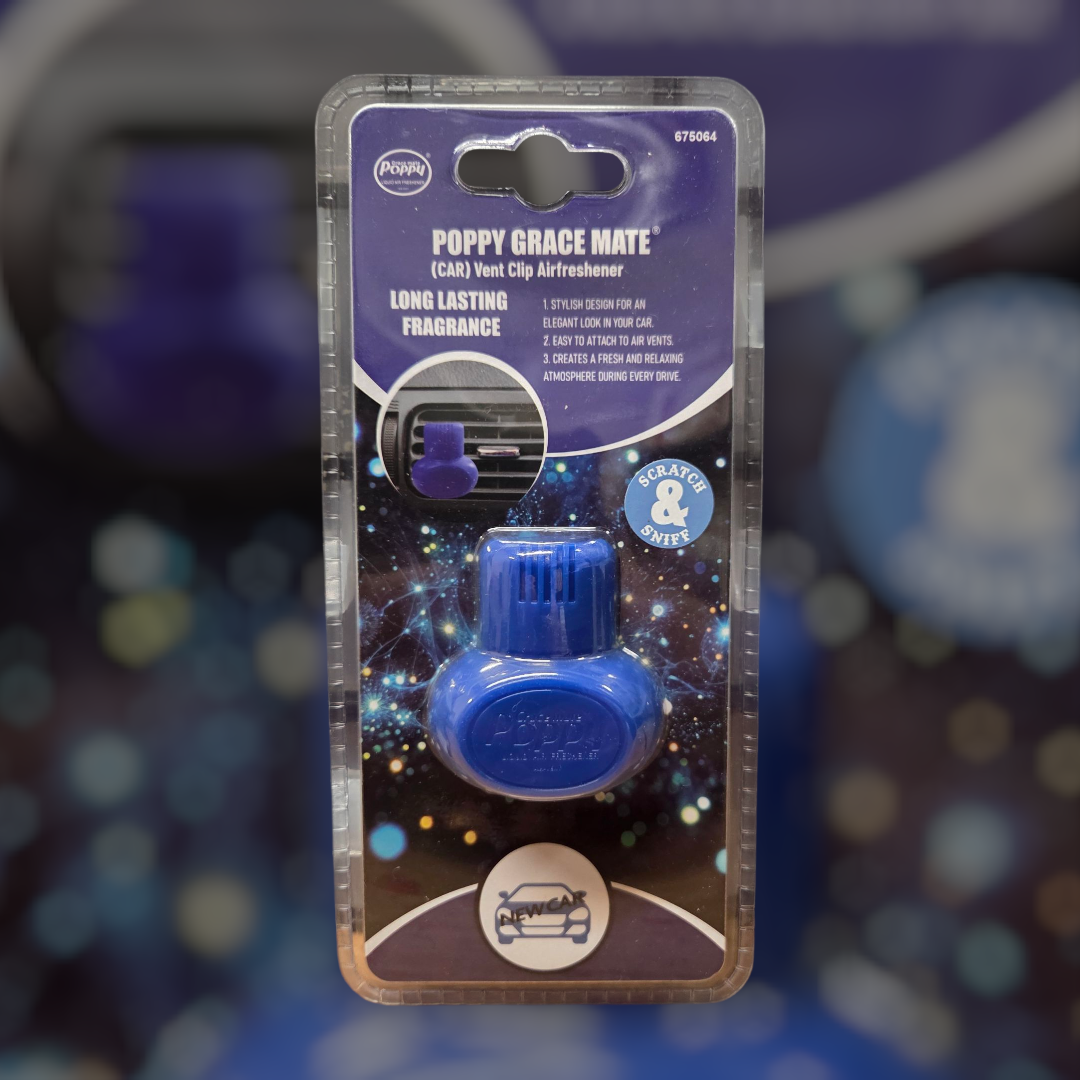 This Poppy Grace Mate EVA air freshener, designed for easy mounting on your vehicle’s air vent. The included clip allows for quick installation and activates the fragrance as soon as airflow begins. Perfect for enhancing your driving experience instantly. Enjoy a subtle, long-lasting fragrance. This air freshener provides a pleasant aroma that stays with you throughout your journey. Its effectiveness ensures your vehicle remains fragrant without overpowering the senses. Equipped with a strong clip for air vent mounting, this air freshener is idealfor cars, trucks, and commercial vehicles. The clip ensures a secure fit, making it a reliable choice for various types of vehicles. Keep your space smelling great on the go!