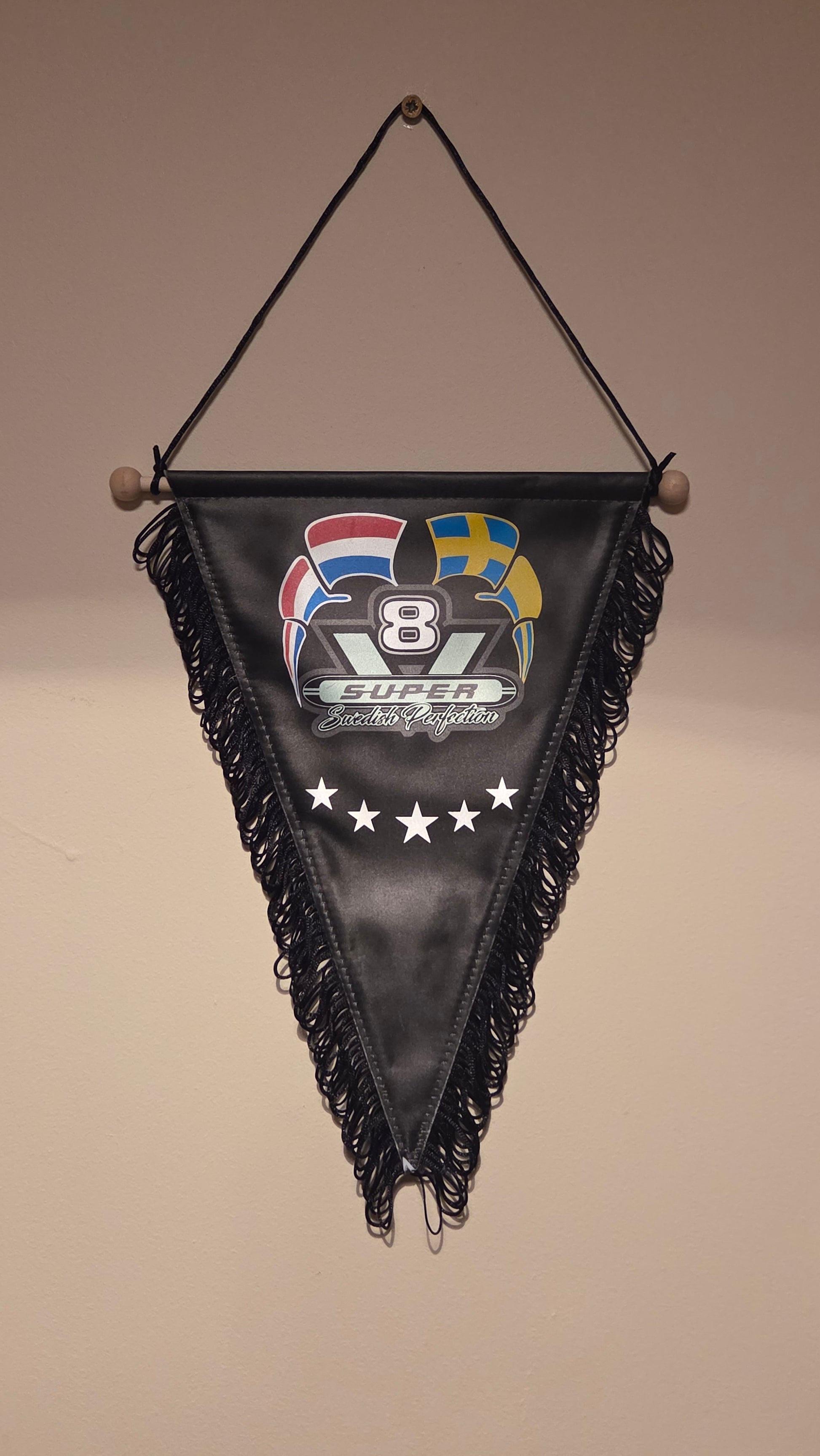 Show your pride with this V8 Swedish Perfection pennant — the ultimate nod to Scania power and Scandinavian style.